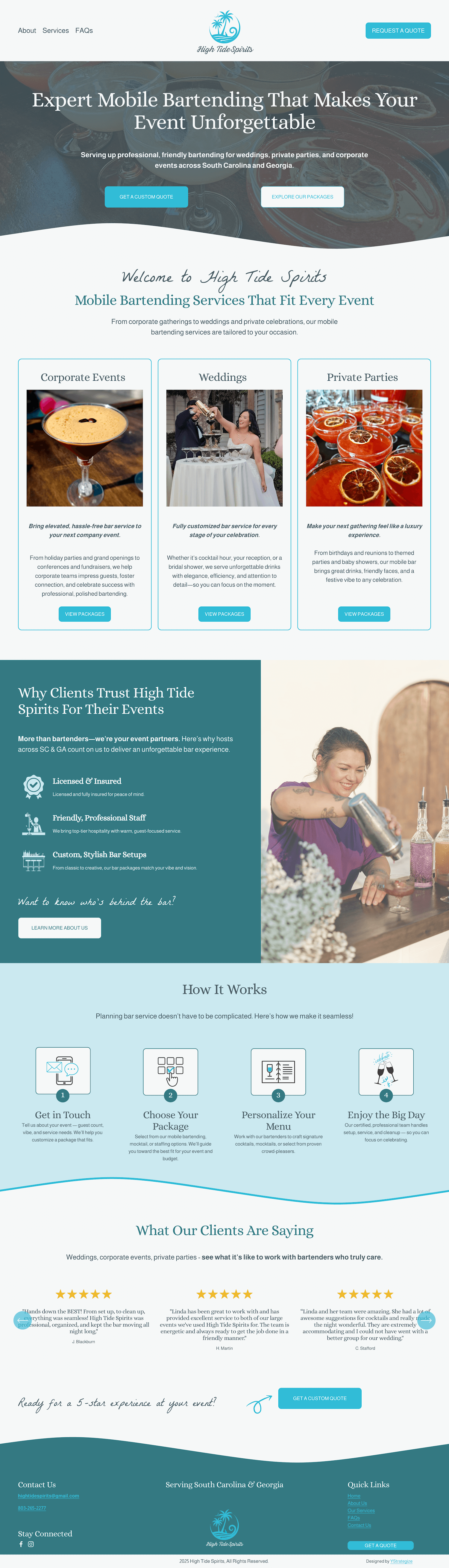 When High Tide Spirits came to me, Linda was operating with a DIY two-page site built on a platform that didn’t give her the flexibility or the confidence she needed. The design didn’t reflect her level of service, and the limited layout made it hard to communicate the value of her offers.